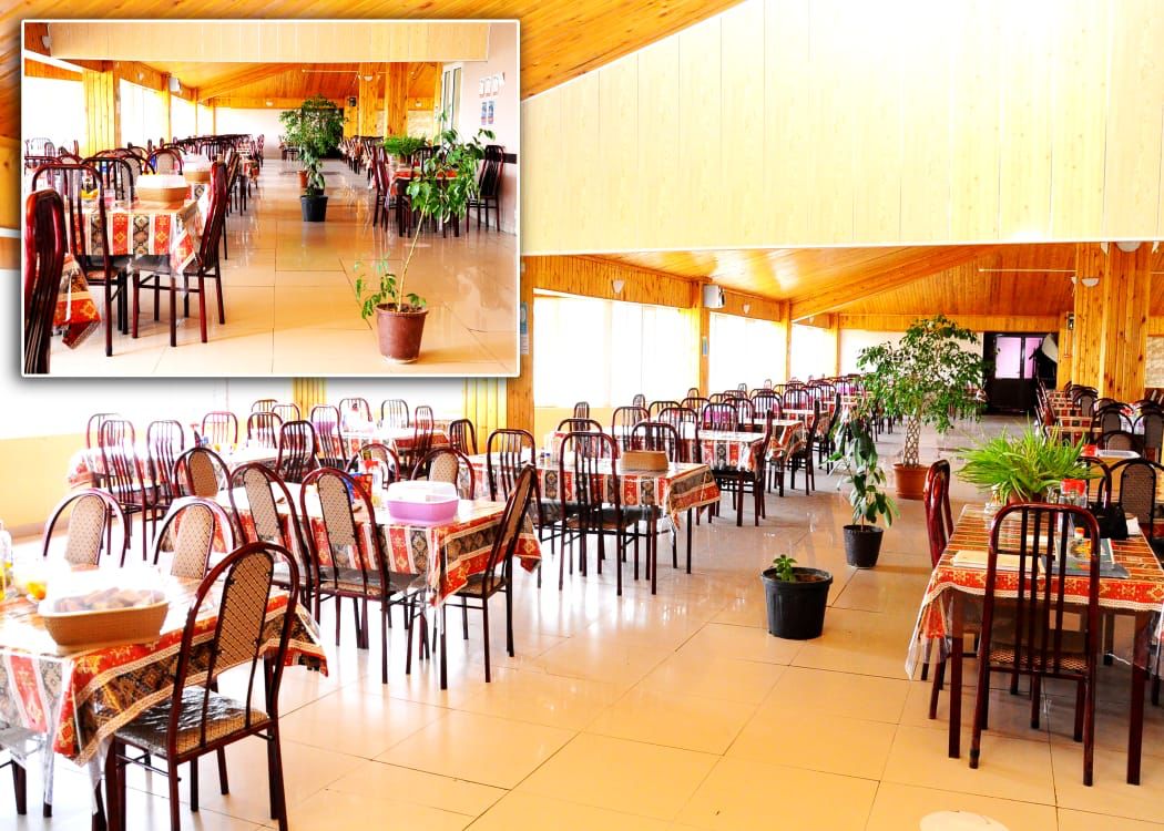На территории санатория на свежем воздухе находится кафе, где готовят кофе, чай, сладости, а также разного вида кастрюльная и мангальная пища.